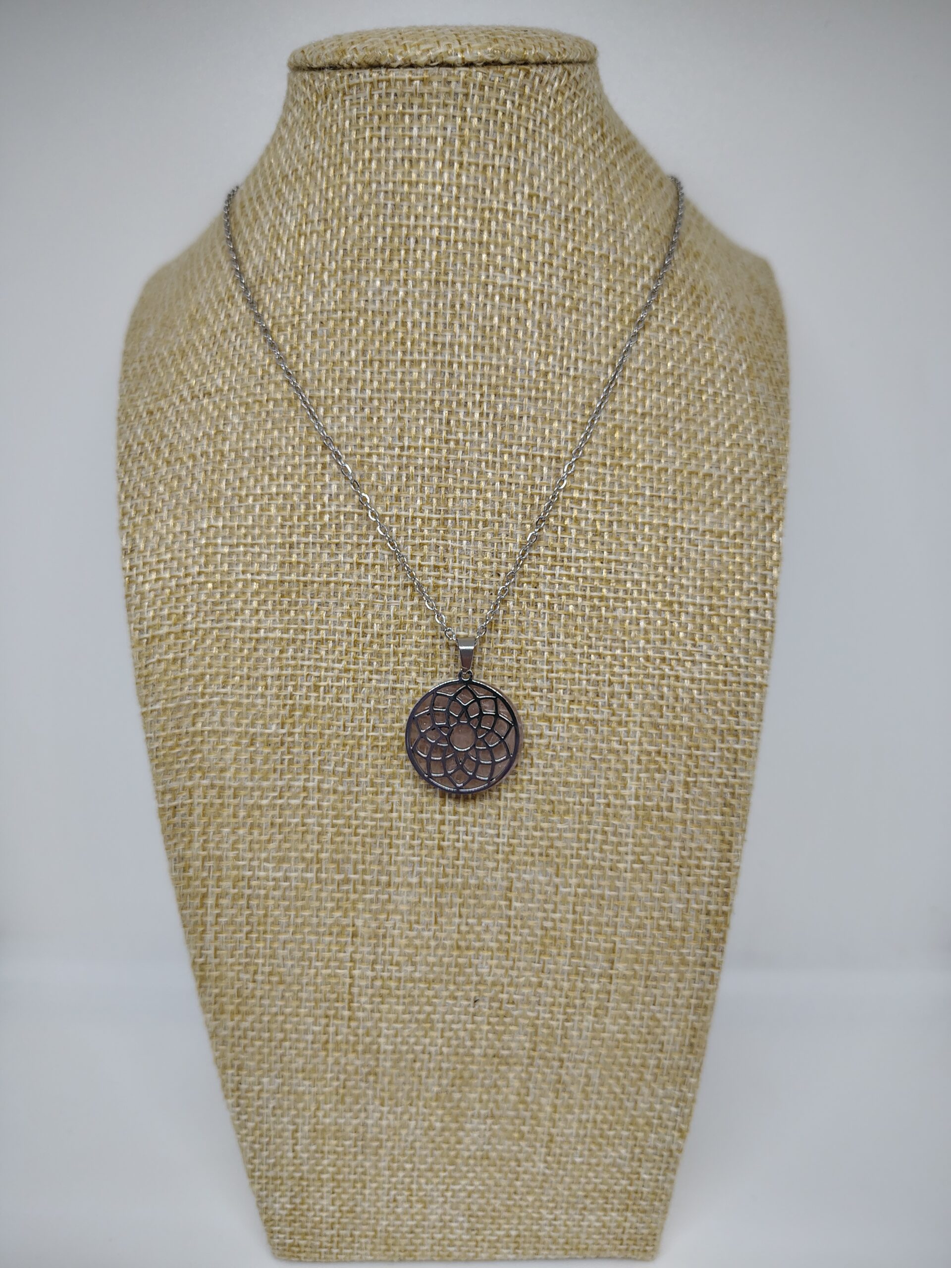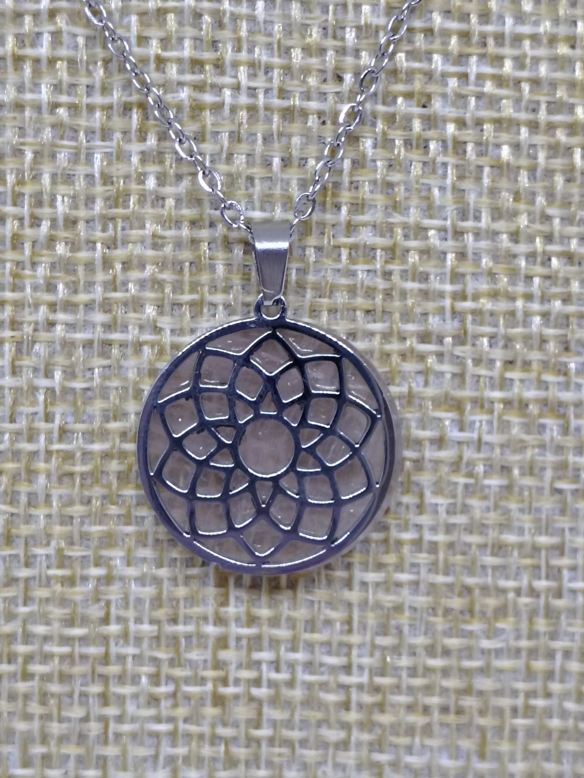 Inicio Accesorios COLGANTE ACERO CUARZO FLOR DE LA VIDA