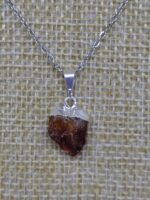 El dije consiste en una piedr acitrino en bruto, lo que significa que la piedra no ha sido pulida ni tallada, conservando su forma y textura natural. El citrino se encuentra en su estado original, lo que le da un aspecto orgánico y auténtico. Su color puede variar en tonalidades, lo que hace que cada dije sea único y especial. El dije está montado en un portadije de electroplata dorado.