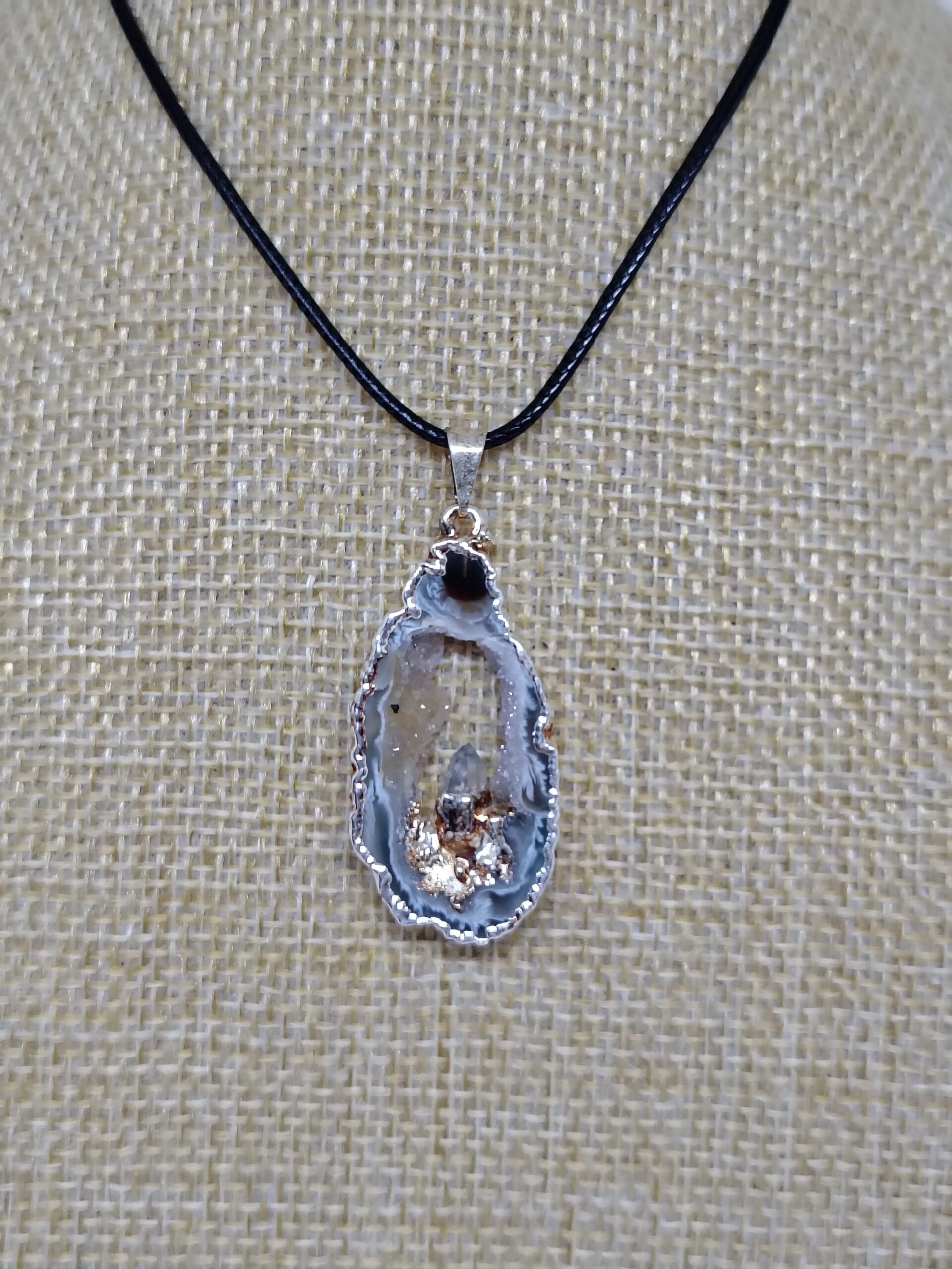 Dije colgantes de corte drusa de ágata geoda natural cuarzo cristal y agata