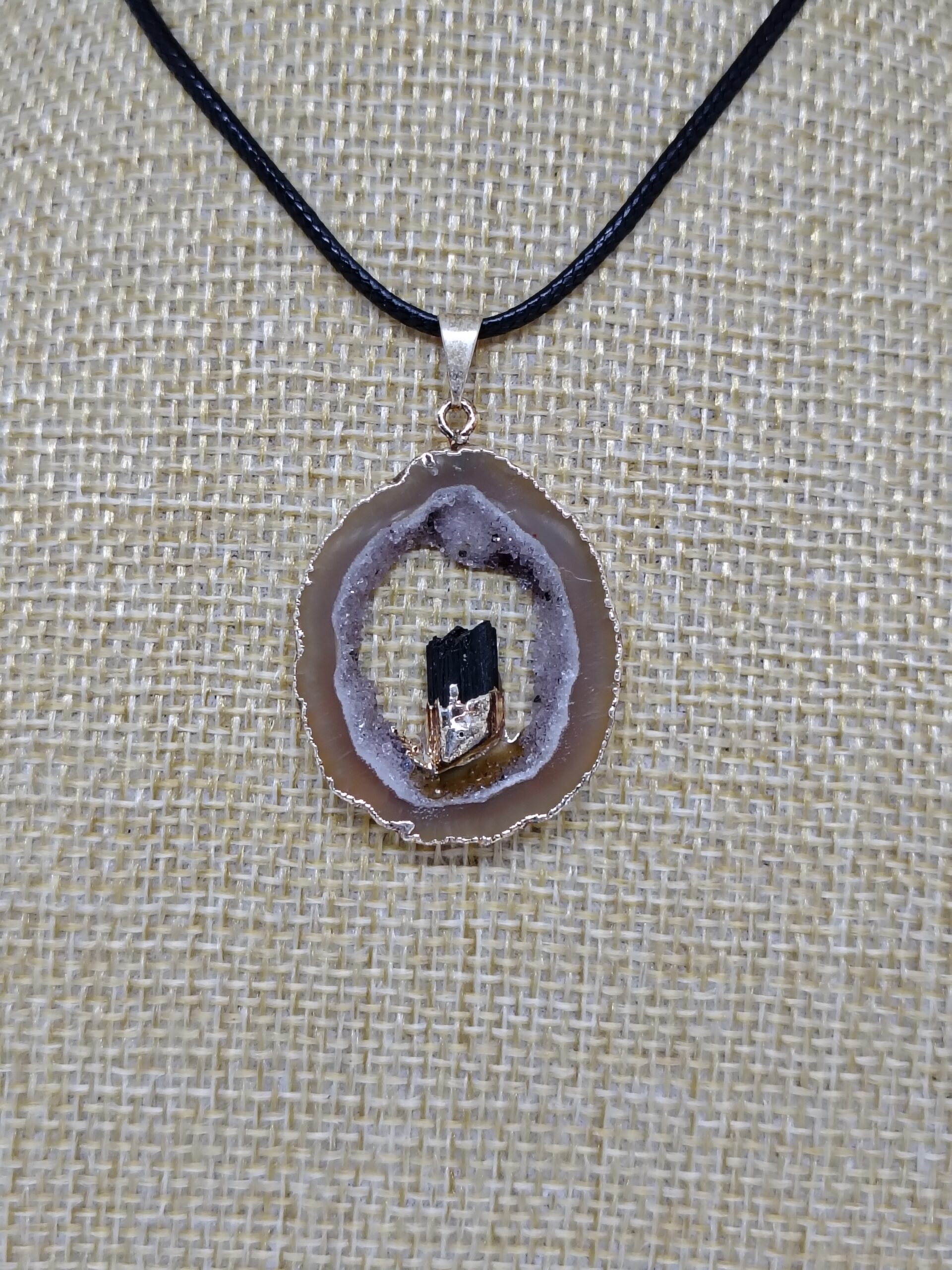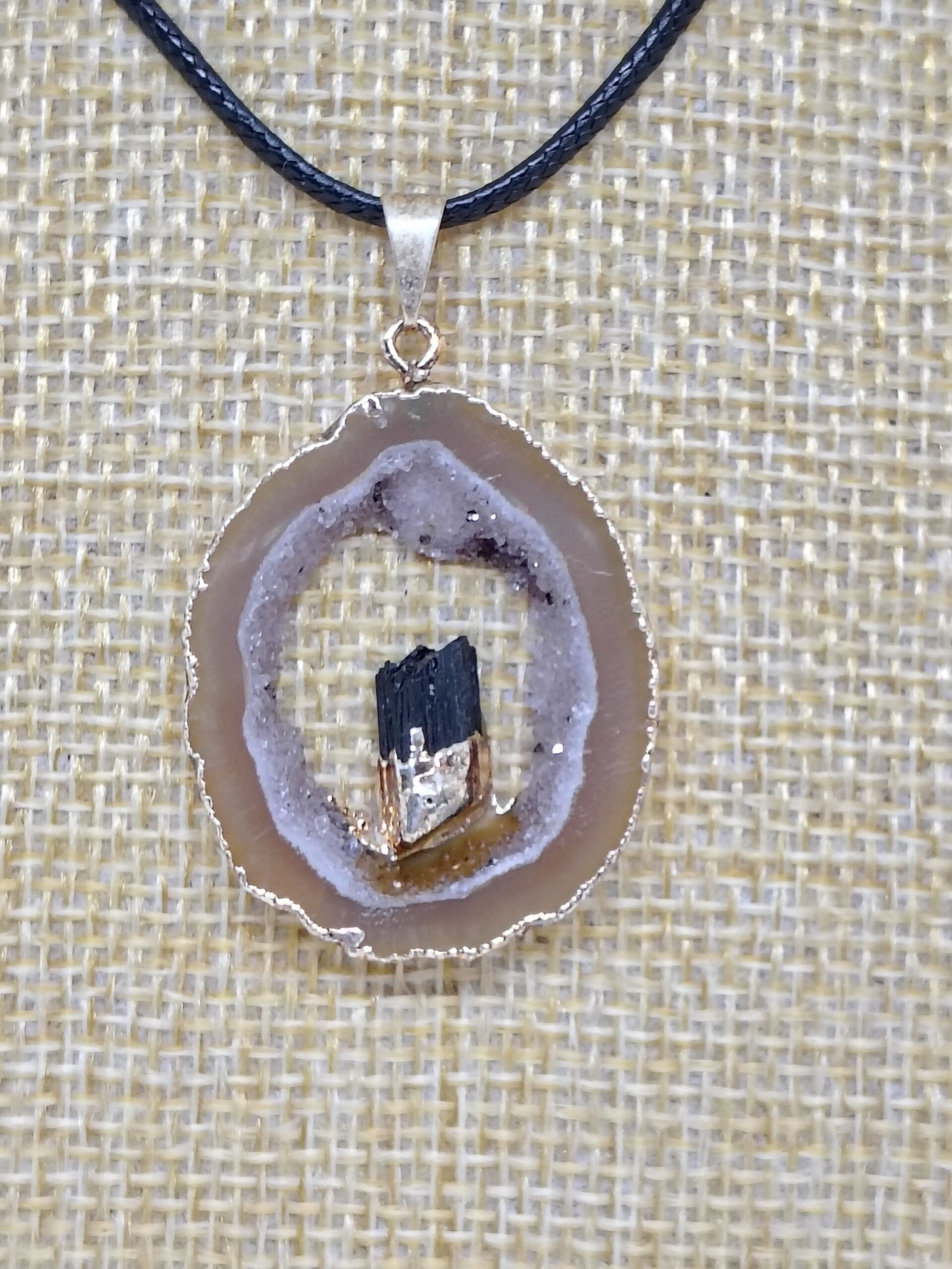 Dije colgantes de corte drusa de ágata geoda natural turmalina y agata