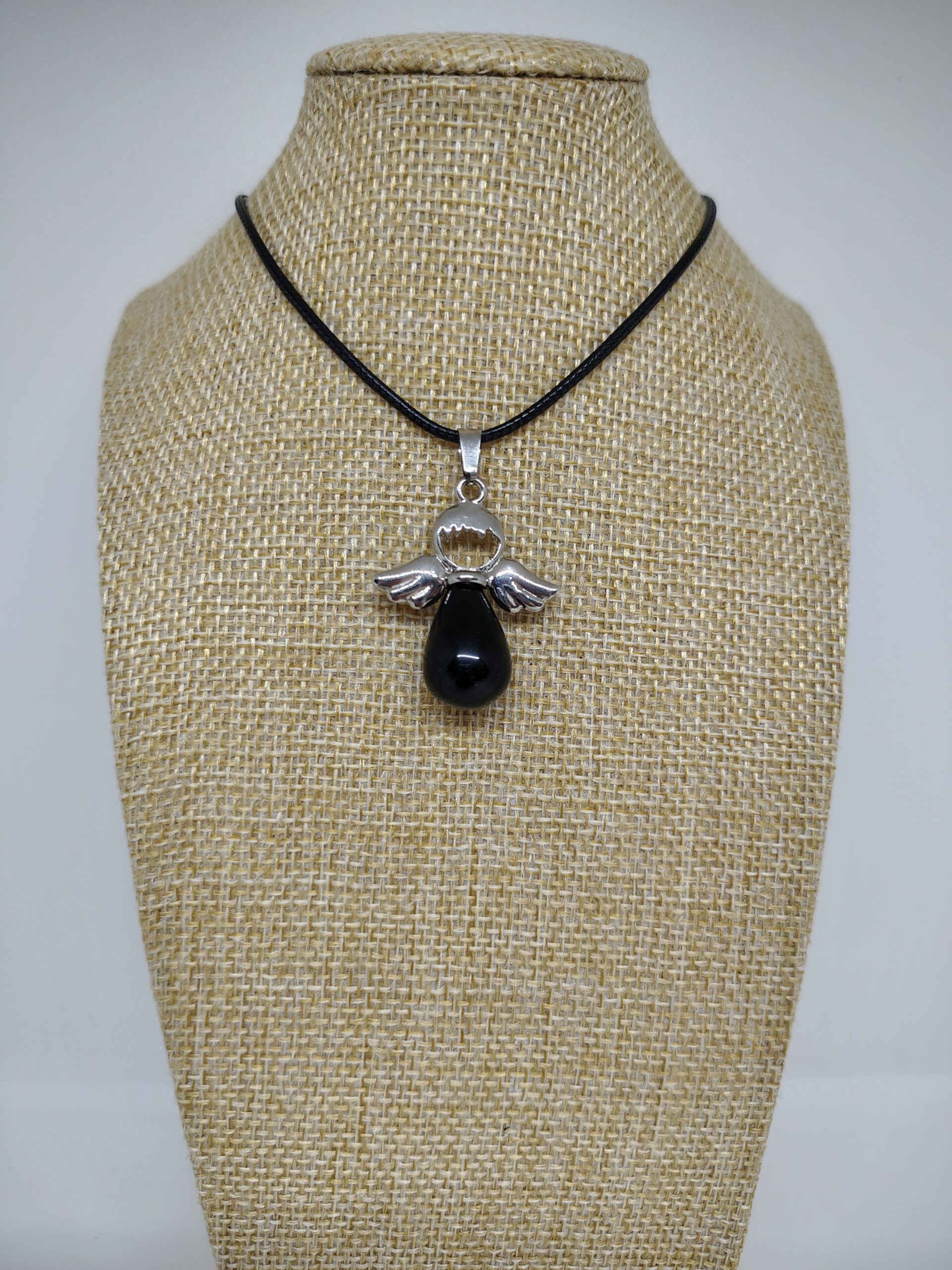 Dije plateado de alas de ángel con piedra de gema natural onix para collar