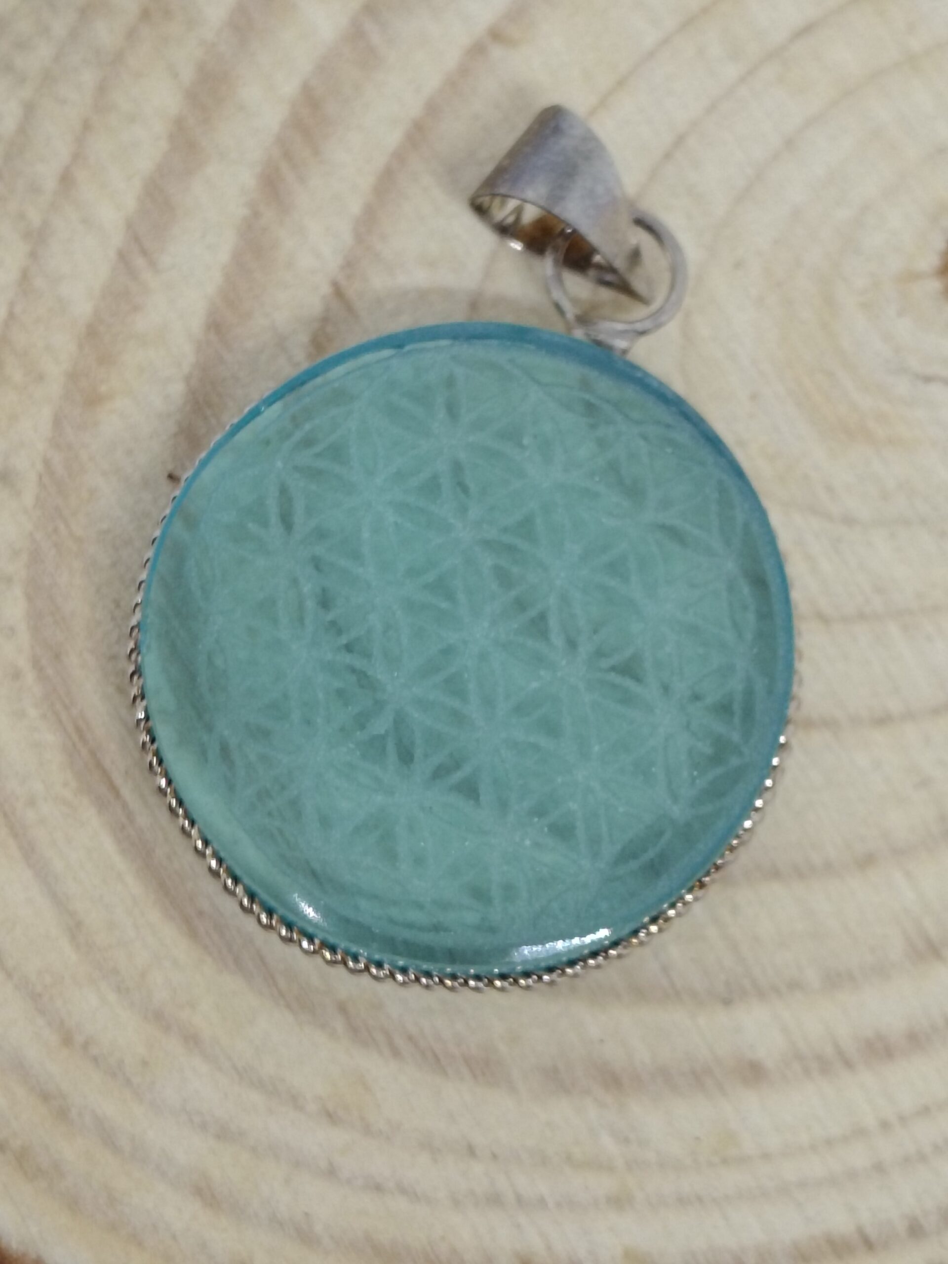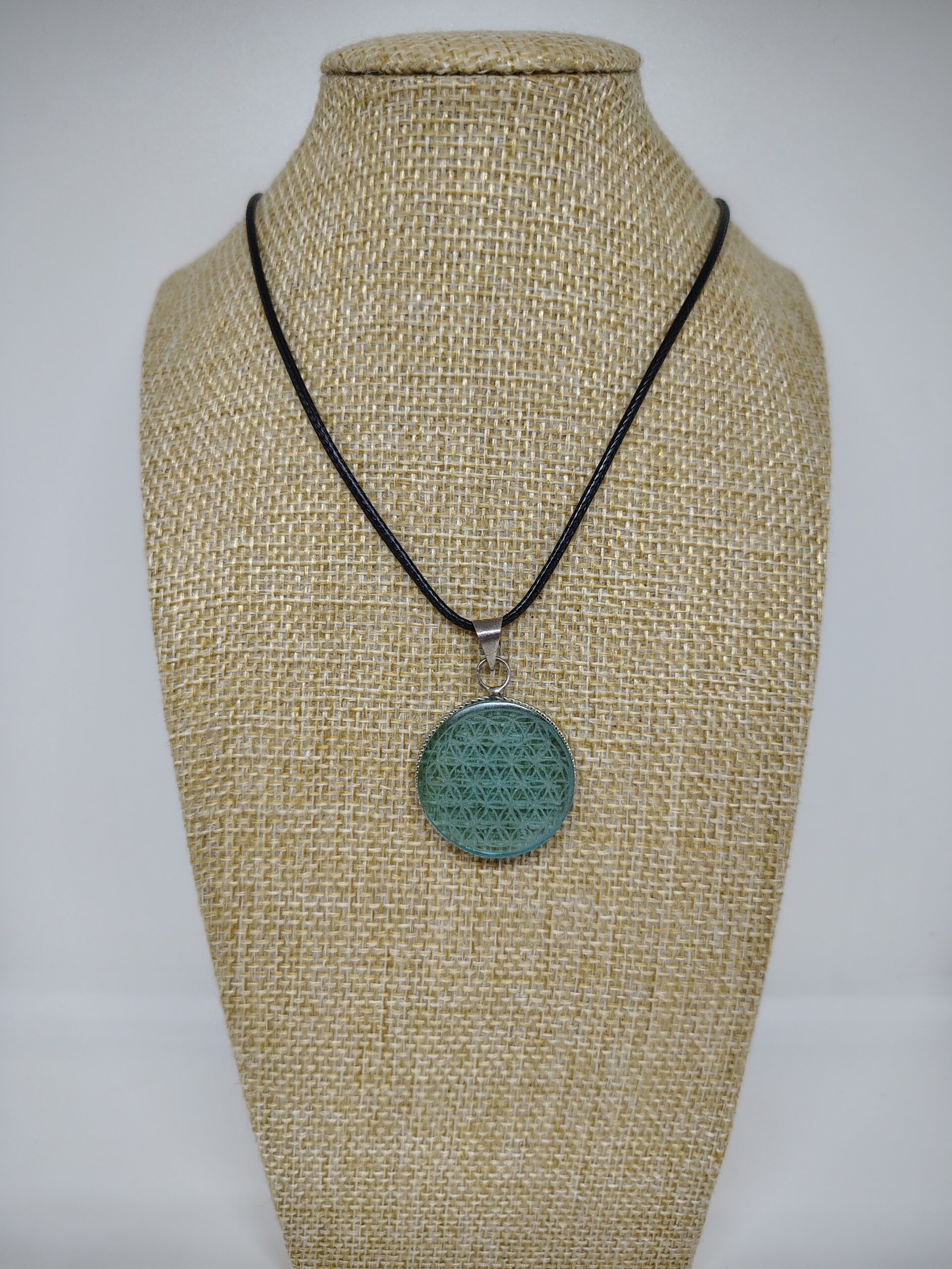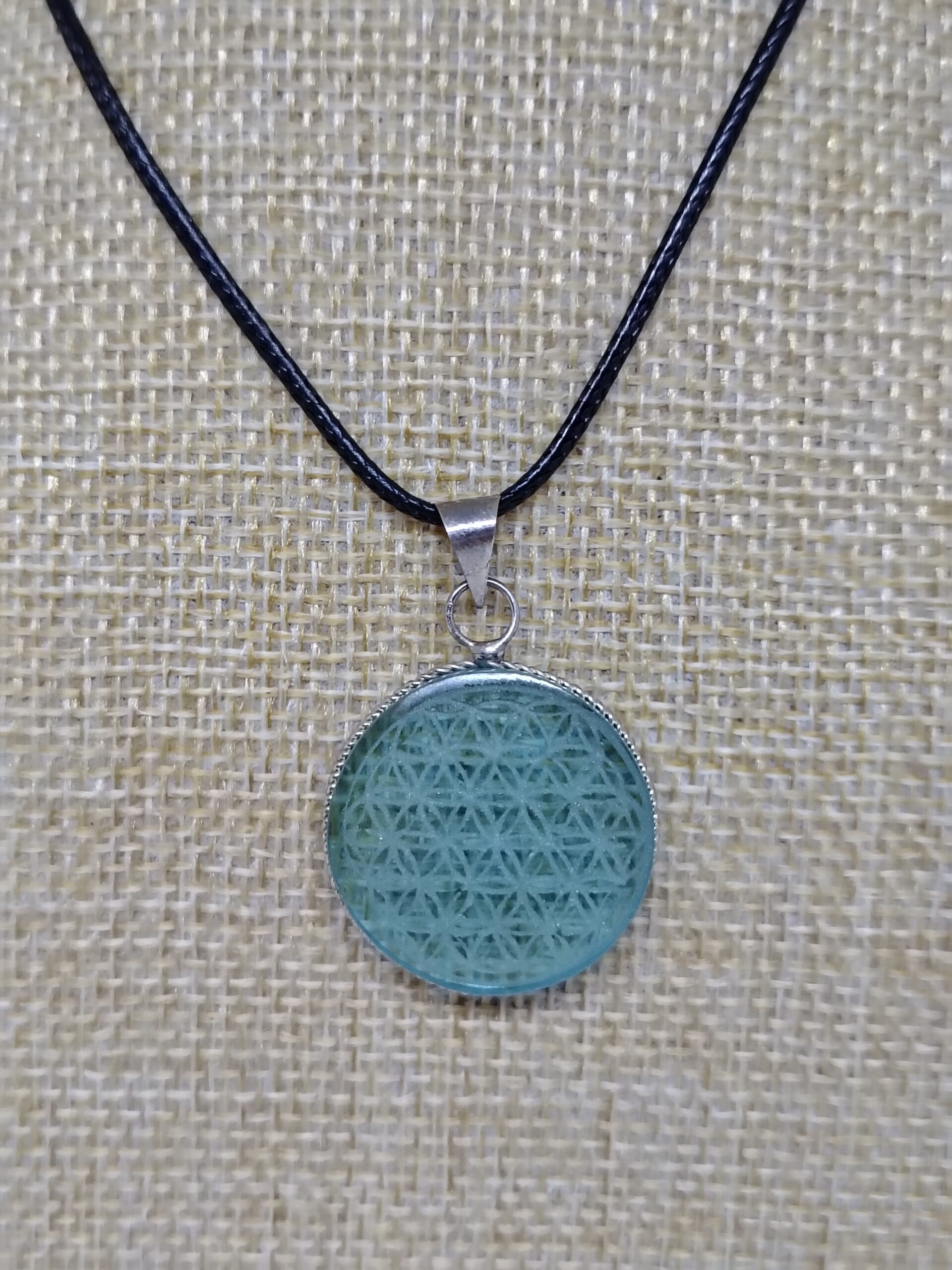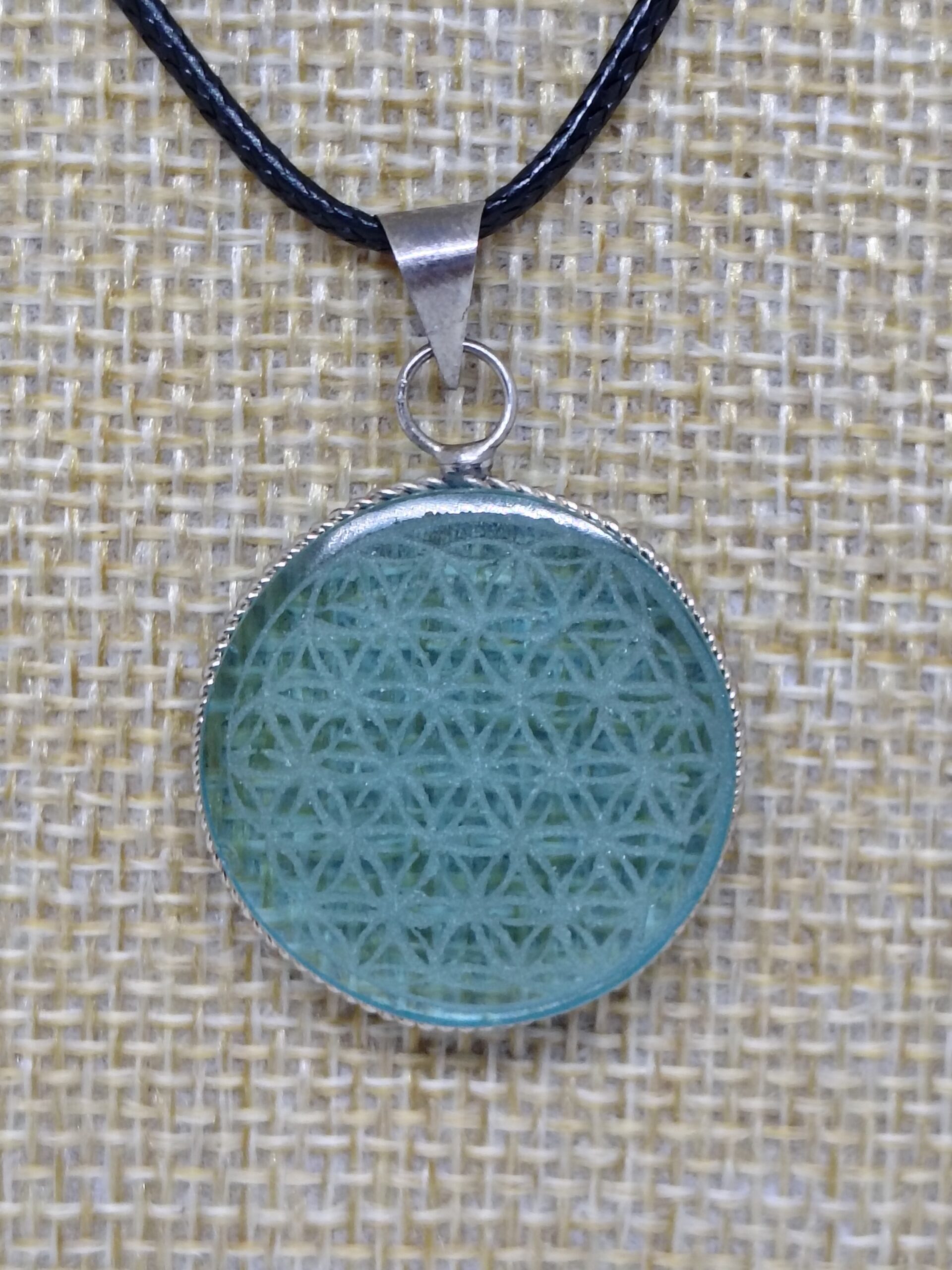 Dije de cristal de obsidiana grabado con la flor de la vida