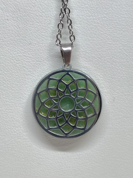 COLGANTE ACERO CUARZO VERDE FLOR DE LA VIDA